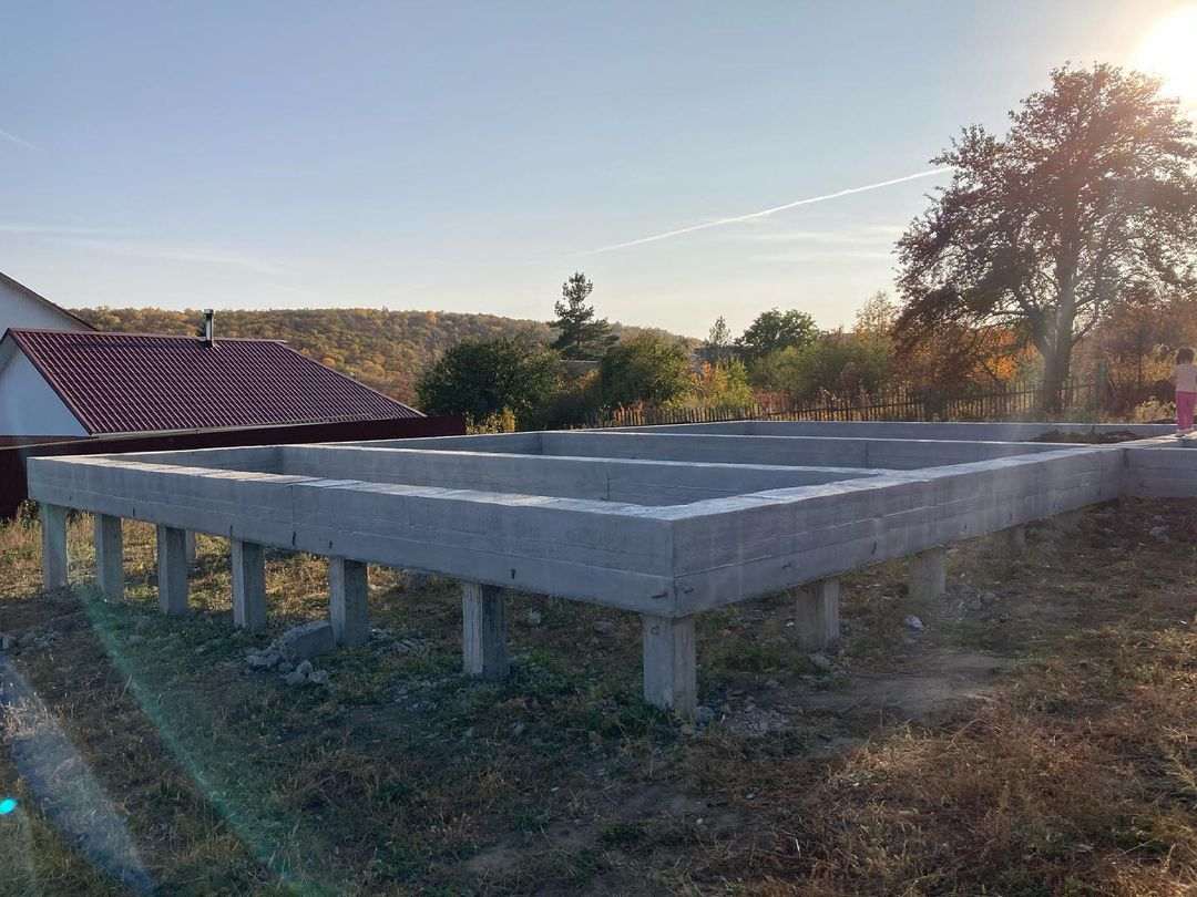 Ленточный фундамент на бетонных сваях